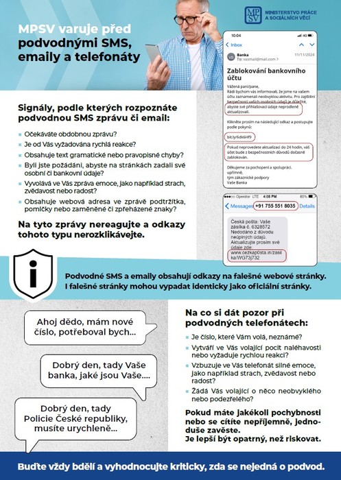Úvod > Život v obci > Aktuality > MPSV varuje před podvodnými SMS, emaily a telefonáty