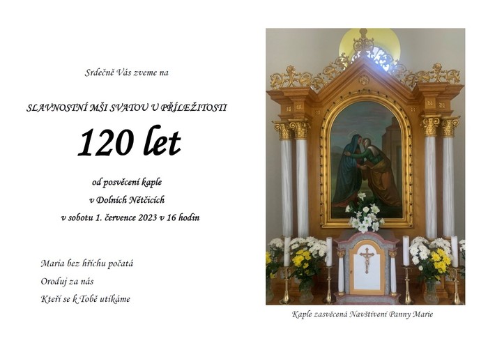Úvod > Život v obci > Aktuality > Oslava výročí 120 let vysvěcení kaple Dolní Nětčice