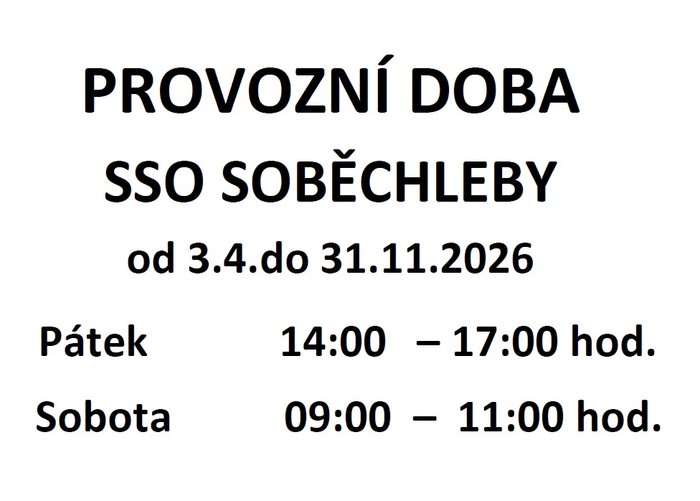 Úvod > Život v obci > Aktuality > Provozní doba SSO Soběchleby od 3.4. do 31.11.2026