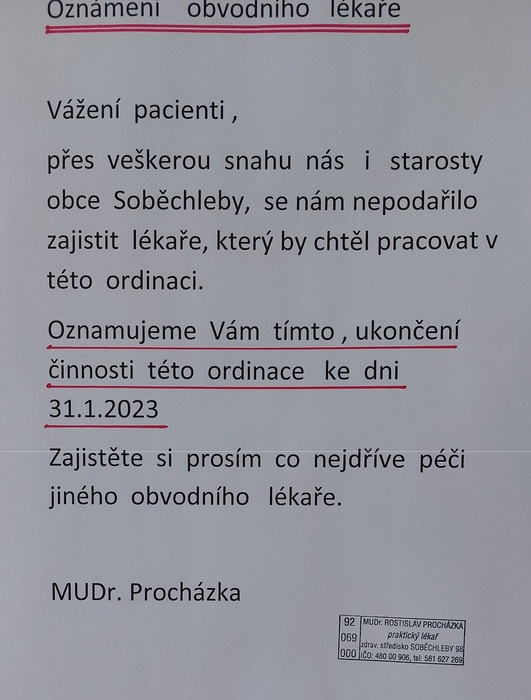Úvod > Život v obci > Aktuality > Ukončení ordinace praktického lékaře